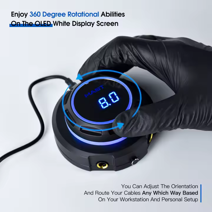 Mástil de tatuaje circular, fuente de alimentación OLED redonda para máquinas de PMU y tatto .rotativas,
